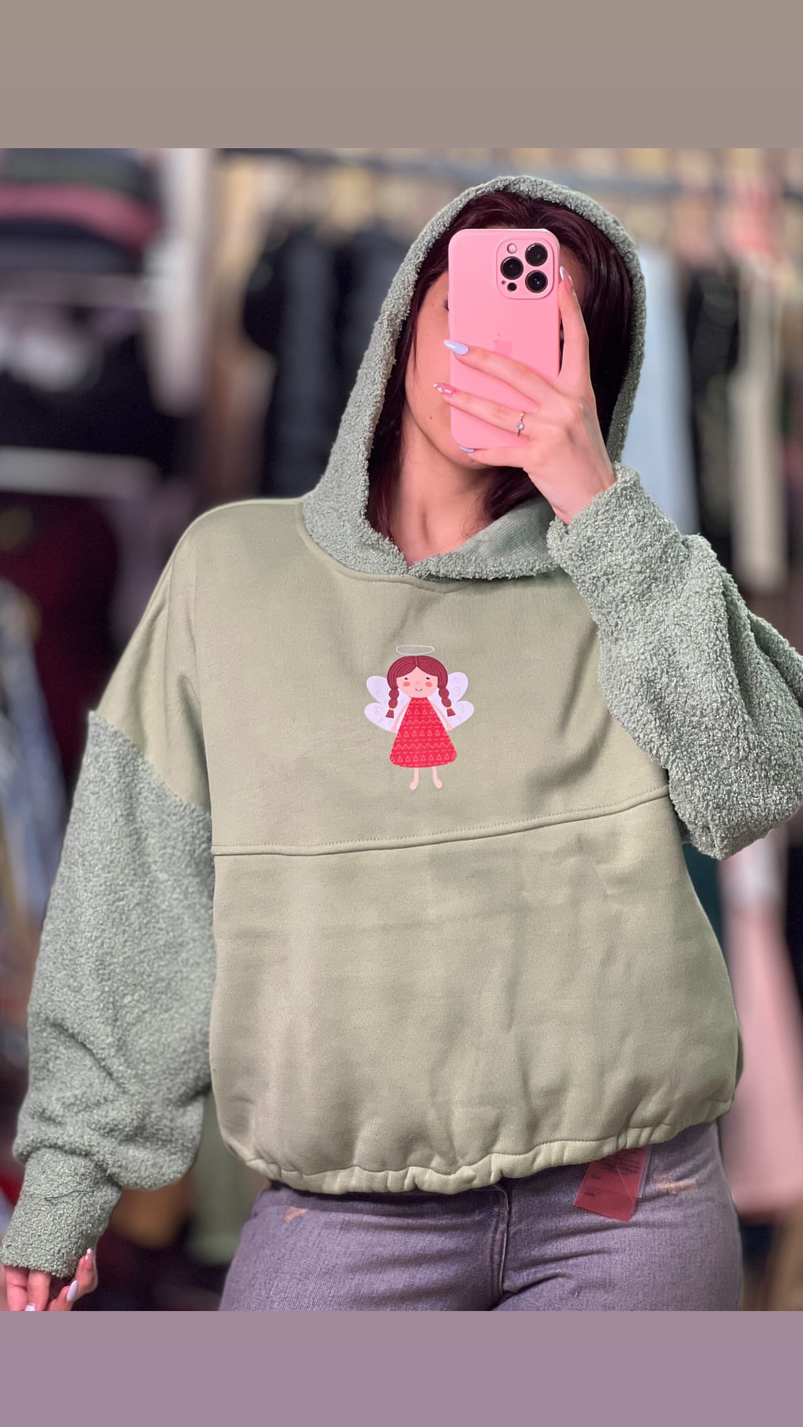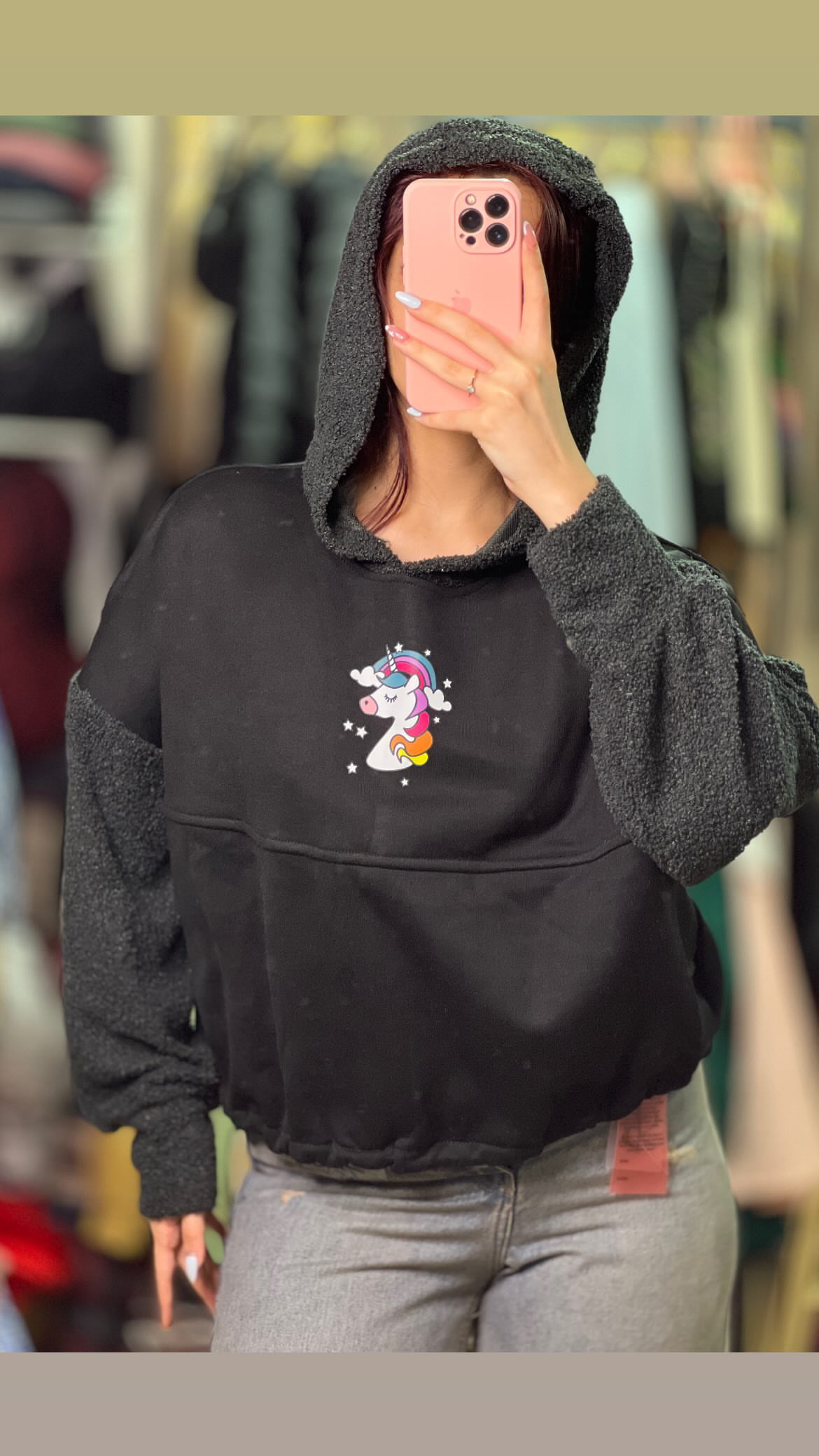 کراپ هودی مدل آستین و کلاه ببعی